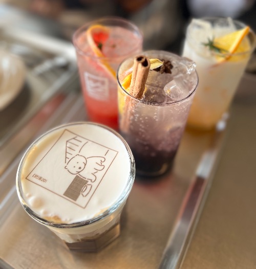 음료는 단순한 아메리카노 외에도 달콤한 딸기라떼, 산뜻한 라임 모히또, 고소한 흑임자라떼 등 다양하다. 커피는 자극적이지 않지만 부드럽고 조화로운 맛이 특징이며, 디저트와 함께할 때 만족도가 높다.